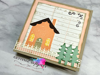 ~ Die Cut the Gingerbread house and fence from Very Vanilla with these coordinating Gingerbread Houses dies and the trees from the Mint Macaron card stocks and the scalloped roof from Early Espresso ink.